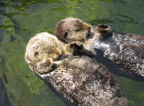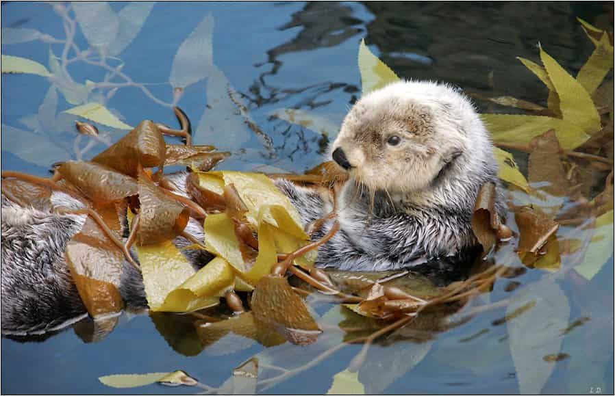 어미 해달은 먹이사냥을 나갈 때 새끼 해달을 수면 위로 올라온 다시마에 묶어놓고 사냥을 나간다고 해요.