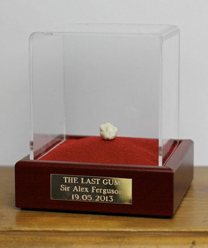 경매에서 팔린 껌은 퍼거슨 전 감독이 2012~2013 시즌 잉글랜드 프리미어리그 최종전인 웨스트브로미치전에서 씹었던 것이죠.